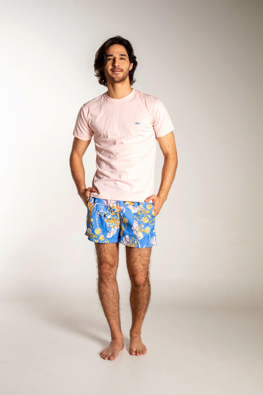 - Camiseta cuello redondo con tiburón bordado.